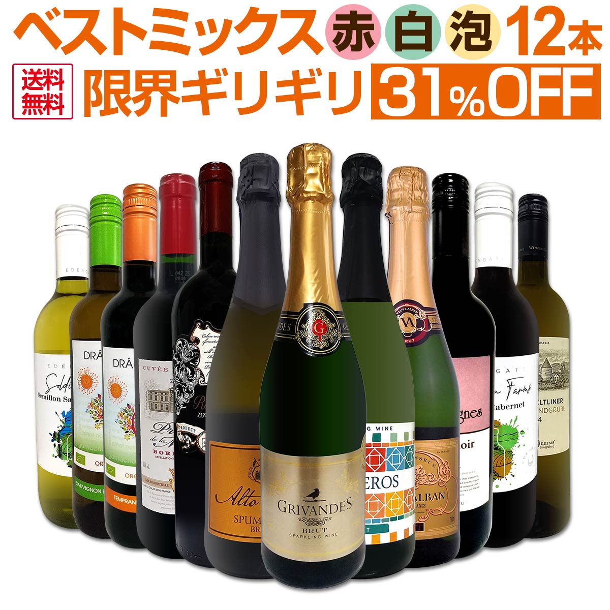 ワインセット 赤白泡 ミックスワイン セット ワイン ギフト 箱 京橋ワイン 京橋わいん 12本 辛口 飲み比べ ミックスワイン 詰め合わせ 送料無料 【 第82弾 限界ギリギリ まで良いワインを詰め込んだ超厳選のベストミックス 赤白泡など 】
