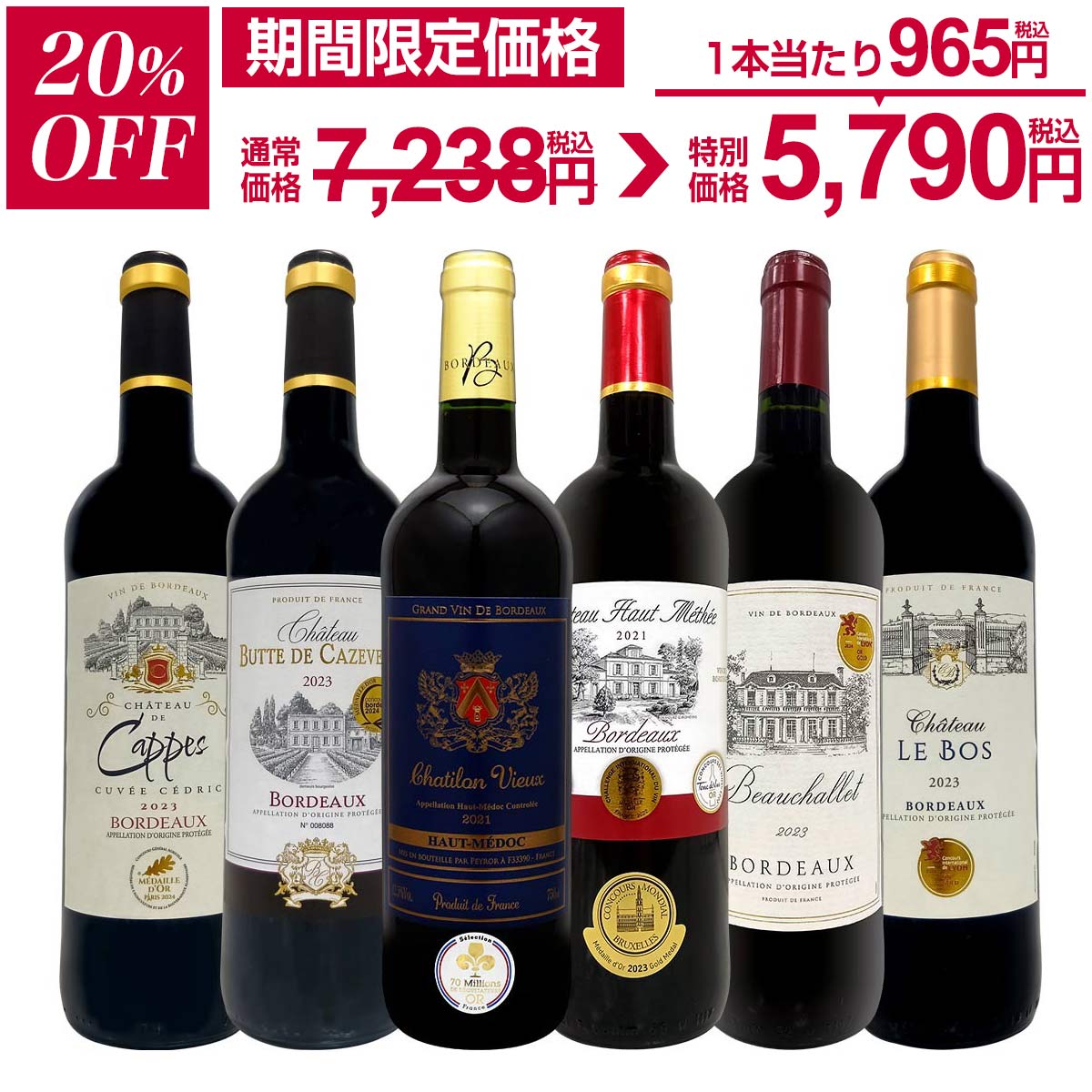 【20%OFF!7,238円 → 5,790円!】赤ワイン フルボディ セット ワインセット 赤 ワイン ギフト 箱 京橋ワイン 京橋わいん 6本 金賞 ボルドー 上質 飲み比べ ボルドー 送料無料 【 第282弾 全て 金賞受賞 極旨ボルドー赤ワイン6本セット 】