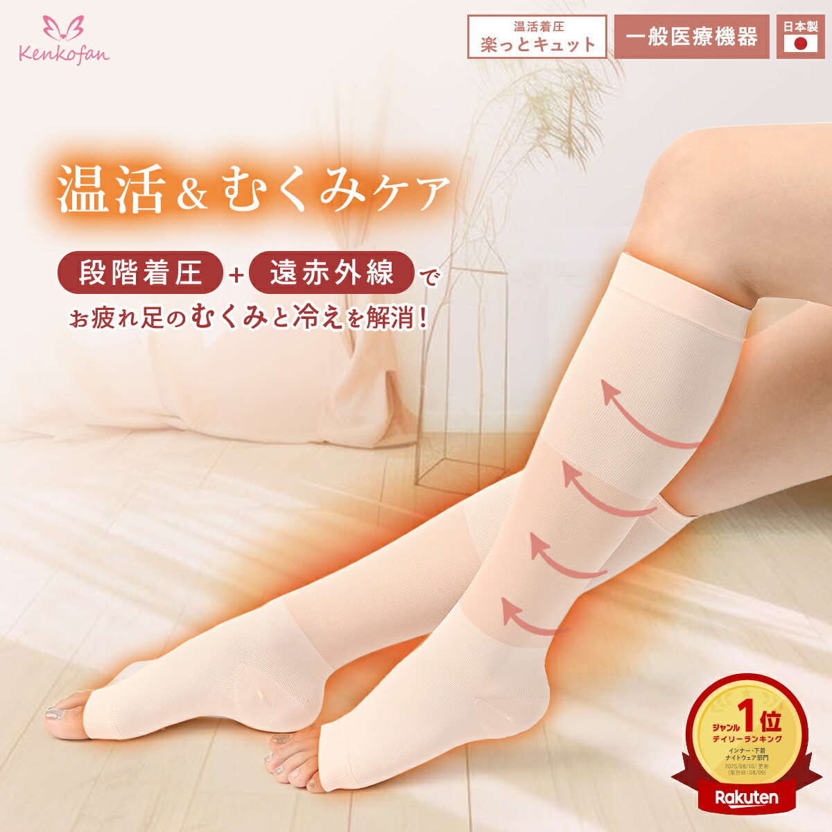 【お家で温活!】温活着圧ソックス むくみケア 美脚 スリムケア 楽っとキュット kenkofan 一般医療機器 遠赤外線 サポーター 冷え対策 レディース ピンク M-L ルームソックス 睡眠時用靴下 マタニティ 着圧ソックス 着圧レッグウォーマー