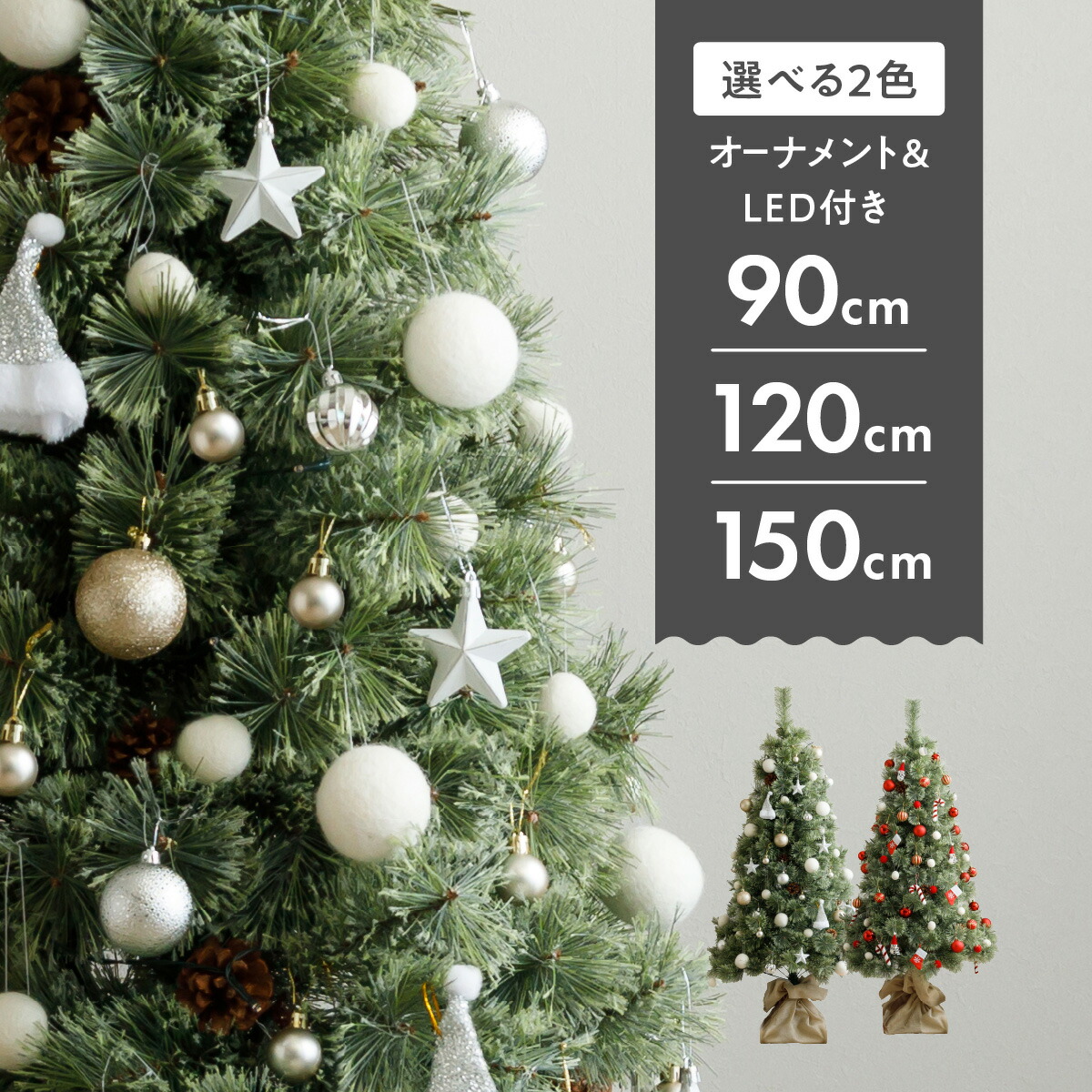 【選べる3サイズ&カラー】クリスマスツリー オーナメント付き 90cm 120cm 150cm 選べる 飾り 赤 白 飾り付き かわいい クリスマスオーナメントセット クリスマスツリーセット LEDライト LEDイルミネーションライト 足元スカート ツリースカート 足隠し