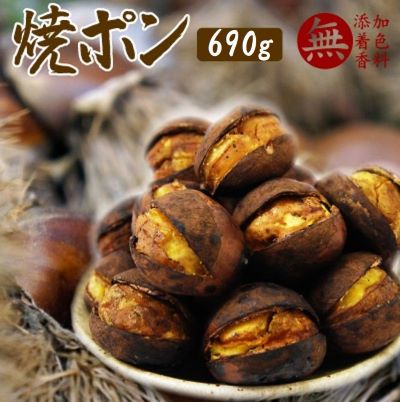 【送料無料】≪テレビで話題≫無添加・無香料・無着色!京都錦市場【京丹波】焼ポン690g(焼栗230g×3袋)数々の有名人の方に御食べいただいています!大粒焼栗!特殊圧力製法による新食感!