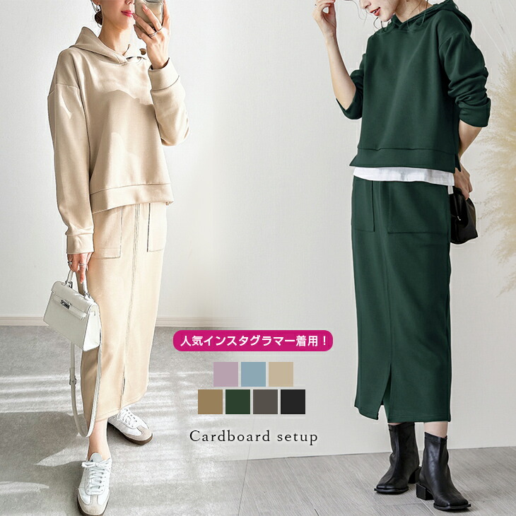 【半額クーポン対象】【奇跡の再販】ダンボール セットアップ スカート レディース 上下セット 大人カジュアル フード タイトスカート パーカー ウエストゴム【lgww-at4456】【即納&予約:10月16日入荷予定順次発送】【送料無料】60込
