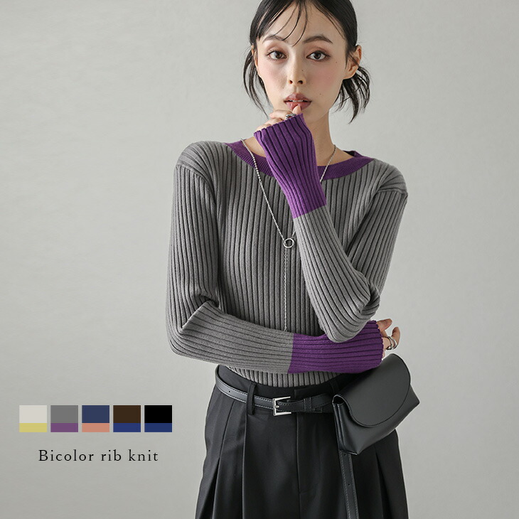 トップス ニット リブニット セーターレディース おすすめ おしゃれ 着痩せ効果 配色デザイン