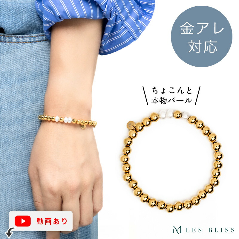 【新作】 ちょこんとパールゴムブレス ブレスレット ゴムブレスレット 金属アレルギー 金アレ ゴールド ゴムブレス 大人 レディース 女性 シンプル おしゃれ メタル 大人 50代 【永久保証】