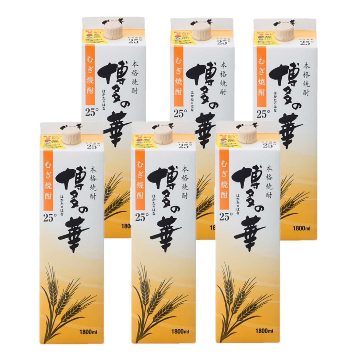 【最強配送】 【送料無料】福徳長酒類 本格焼酎 博多の華 むぎ 25% パック 1800ml 1.8L1ケース/6本【北海道・沖縄県・東北・四国・九州地方は必ず送料がかかります】焼酎 麦焼酎 紙パック オエノン