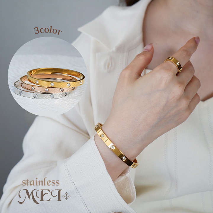 【最大30%OFFクーポン配布中】ブレスレット メタルバングル レディース 韓国ファッション メンズ ペア バングル サージカルステンレス 金属アレルギー対応 シンプル 高品質 ジルコニア きれいめ 上品 大人 ホワイト ゴールド ローズゴールド アクセサリー