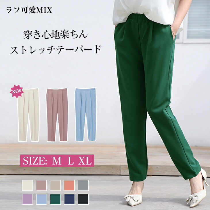 イージーパンツ きれいめパンツ ジョガーパンツ パンツ ロング すっきり 低身長 高身長 大きいサイズ リラックス ウエストゴム 楽ちん ストレッチ 細身 美ライン 美脚パンツ