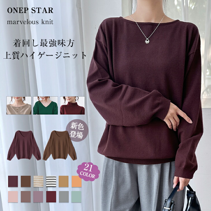 《選べる3タイプ×21色》洗えるニットトップス カシミヤタッチ しっとり上質な肌ざわり長袖ニット きれいめ ゆったりシルエット 体型カバー 秋冬コーデ カジュアル 着回し力抜群 オフィスカジュアル