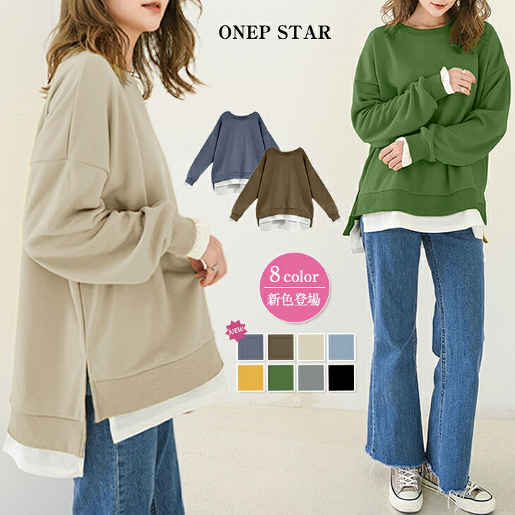 【2,290円!10/19 23:59まで】トレーナー 長袖 パーカー スウェット カットソー ゆったり レイヤード風 モックネット ドルマンスリーブ ボリューム袖 カジュアル 体型カバー レディースファッション 40代 50代 ワンピスター