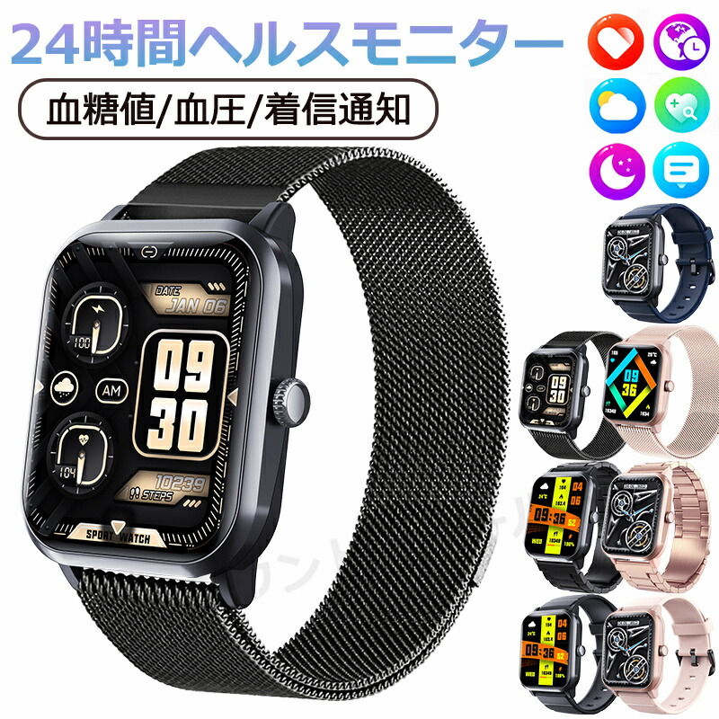 スマートウォッチ 日本製 血圧 心拍数 血糖値 着信通知 24時間皮膚温変動検知 血中酸素濃度 歩数 大画面 血糖 値 計測 スマートウォッチ 電卓 天気 ストップウォッチ スポーツ IP67防水