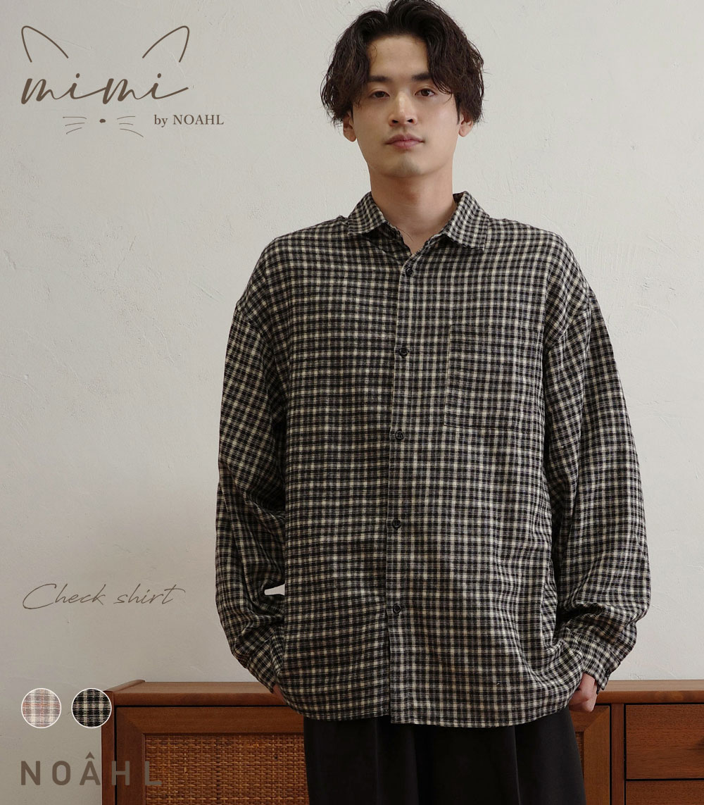 NOAHL|《5,928円→40%offクーポン利用》【 mimi by NOAHL 】【メール便】チェック シャツ トップス メンズ チェックシャツ チェック柄 オーバーシャツ ボタン カジュアルシャツ ベージュ オレンジ ブラック 黒 ノアル 251010【予約】