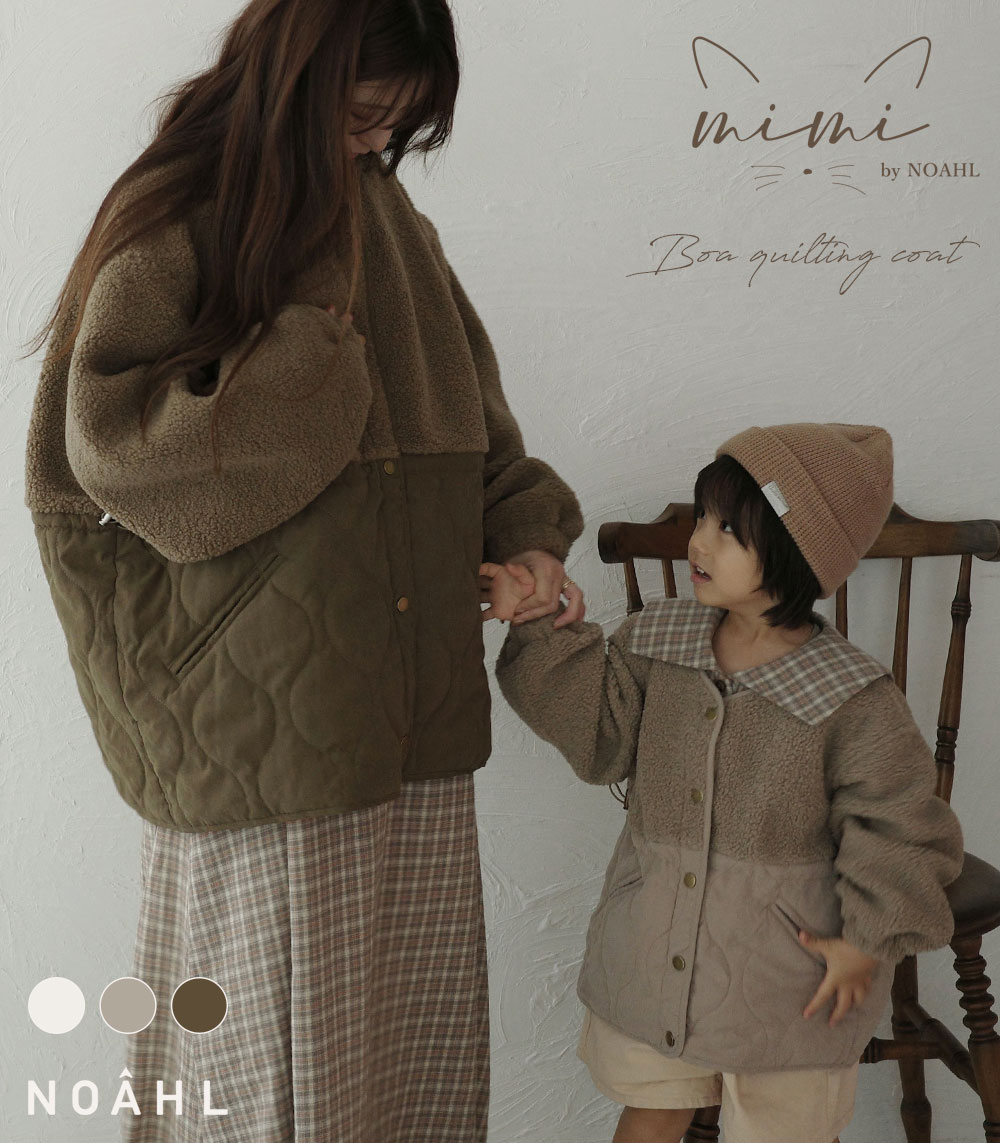 NOAHL|《3,990円~5,990円→50%offクーポン利用》【 mimi by NOAHL 】キルティング ボア コート アウター キッズ レディース 子ども服 お揃い 親子コーデ ノーカラー ドロスト 切替 アイボリー グレージュ ブラウン ノアル 251112【予約】