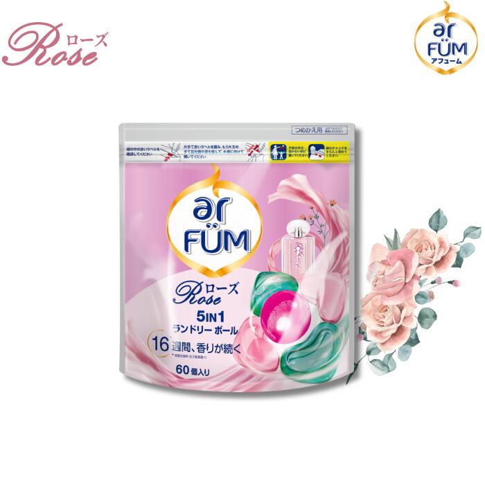 【P2倍5%OFFクーポン有】最大半額★柔軟剤入り洗濯洗剤 詰替 60粒 ローズ 優しくスウィートなローズ&ピーチの香り 大容量 アフューム arfum 5in1 ジェルマジックボール型洗剤 消臭 抗菌 洗剤 衣類清潔 新生活応援【メーカー直営 王子製薬 国内生産】