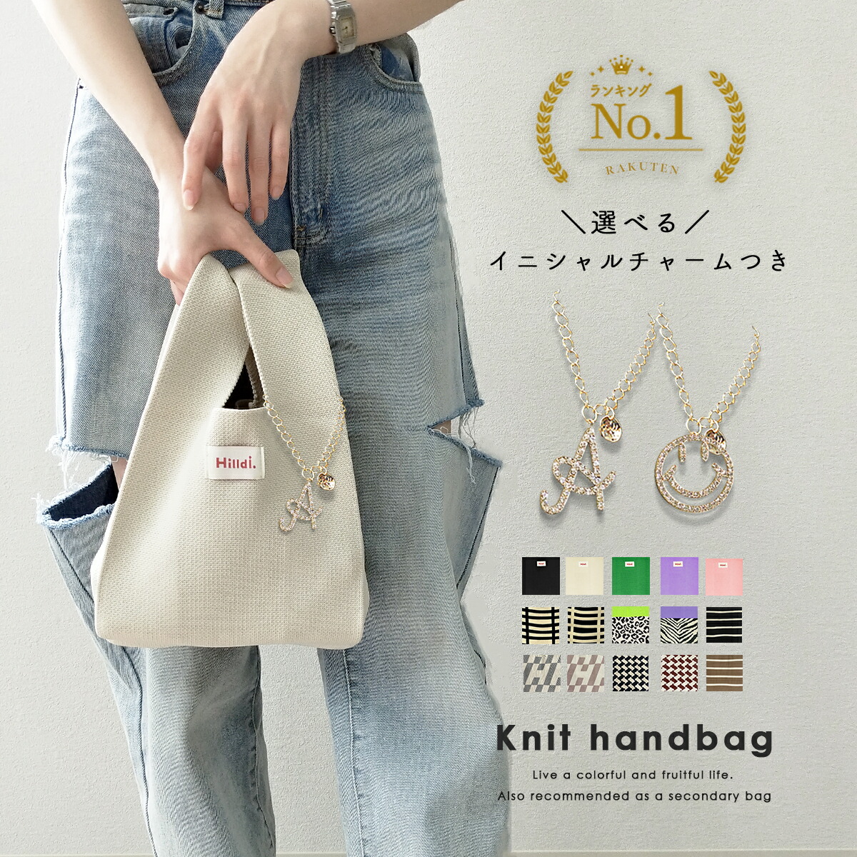選べるチャームつき ニットバッグ ニットトート トートバッグ 洗濯可 洗える レディース イニシャル ミニトート バッグ かばん 鞄 小さめ エコバッグ ミニバッグ トート サブバッグ トレンド コンビニ 送迎 ママバッグ ランチバッグ