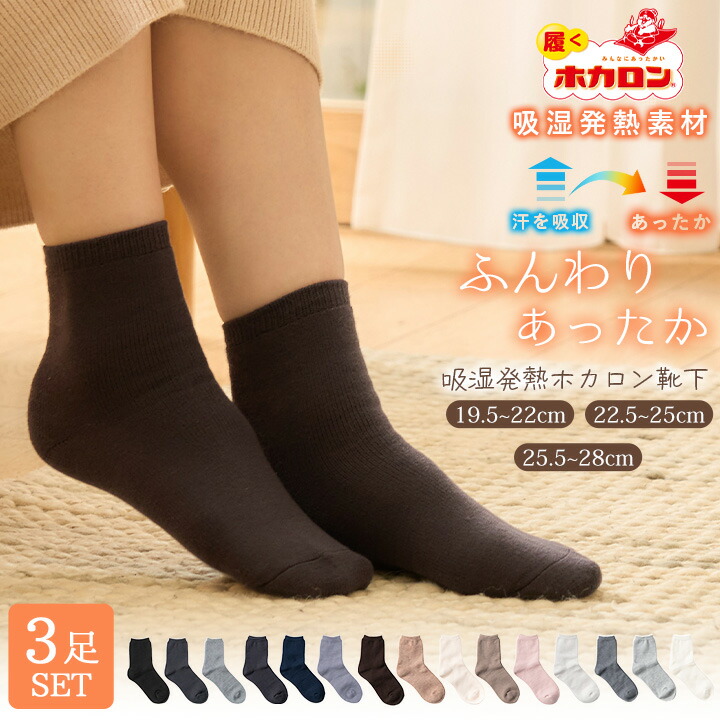 靴下 冷えとり 3足組 履くホカロン あったか靴下 レディース ソックス 吸湿発熱 冷え取り靴下 抗菌・防臭 裏パイル ブラック 黒 22.5cm-25.0cm くつした 保温 ルームソックス 冬 冷えとり あったか 暖かい 温活