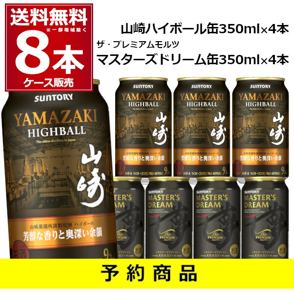 2025年12月22日以降順次発送予定 予約 数量限定 サントリー 山崎 ハイボール 350ml×4本 ザ プレミアム モルツ マスターズドリーム 350ml×4本 8本(1セット) ビール プレモル 山崎蒸溜所 ウイスキー 缶 【送料無料※一部地域は除く】