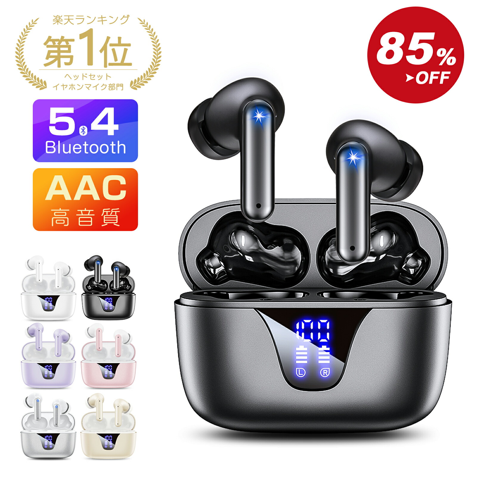 【楽天連続1位】\クーポン★P5倍で2,094円!/ワイヤレスイヤホン Bluetooth5.4 2025最新型 LCD残量表示 EDR搭載ノイズキャンセリング 自動ペアリング ブルートゥースイヤホン 重低音 軽量IPX7防水 36H連続再生 Type‐C急速充電AAC対応 iPhone/Android対応 通勤/通学