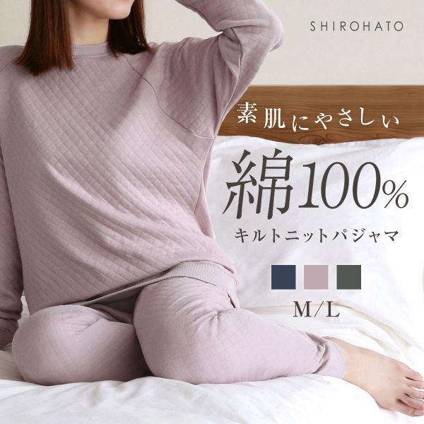 両面が綿100%で柔らかなキルティングの春秋冬用パジャマ