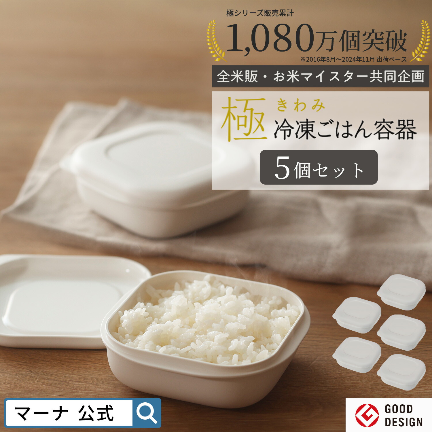 楽天1位【マーナ公式】極 冷凍ごはん容器 5個セット| 約3合分 ご飯 冷凍 容器 180g 小分け 保存容器 食洗機対応 電子レンジ対応 お米保存容器 冷凍器 お弁当 洗いやすい レンジ可 おしゃれ キッチン 便利グッズ ケース 引っ越し 一人暮らし BPAフリー ギフト 送料無料 X110