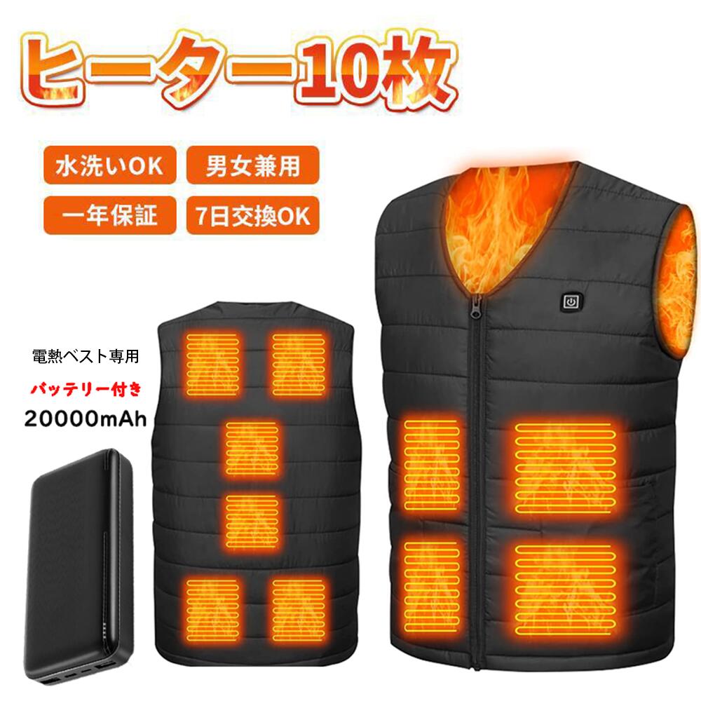 在庫セール★電熱ベスト 10つ日本製繊維ヒーター バッテリー付 ヒーターベスト ヒートベスト USB給電式 加熱ベスト 電熱ジャケット ベスト 3段階温度調節 5s速暖 洗濯機対応 ホットベスト 防寒インナー 省エネ 洗える 登山 男女兼用 丸洗い M~XXXL