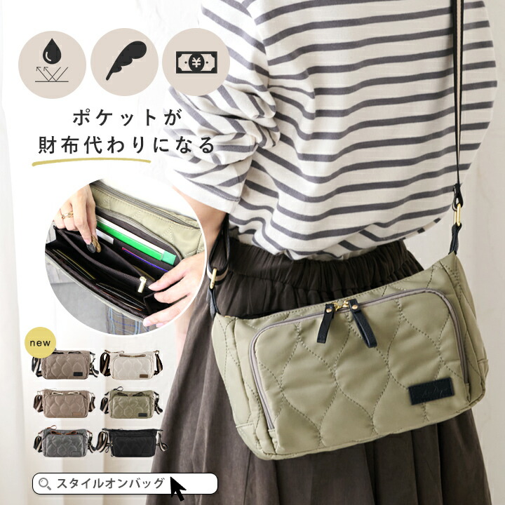 LIZDAYS / ポケットがお財布代わりになる!身軽に過ごせて可愛いキルト調 ナイロン キルティング ショルダーバッグ スタイルオンバッグ