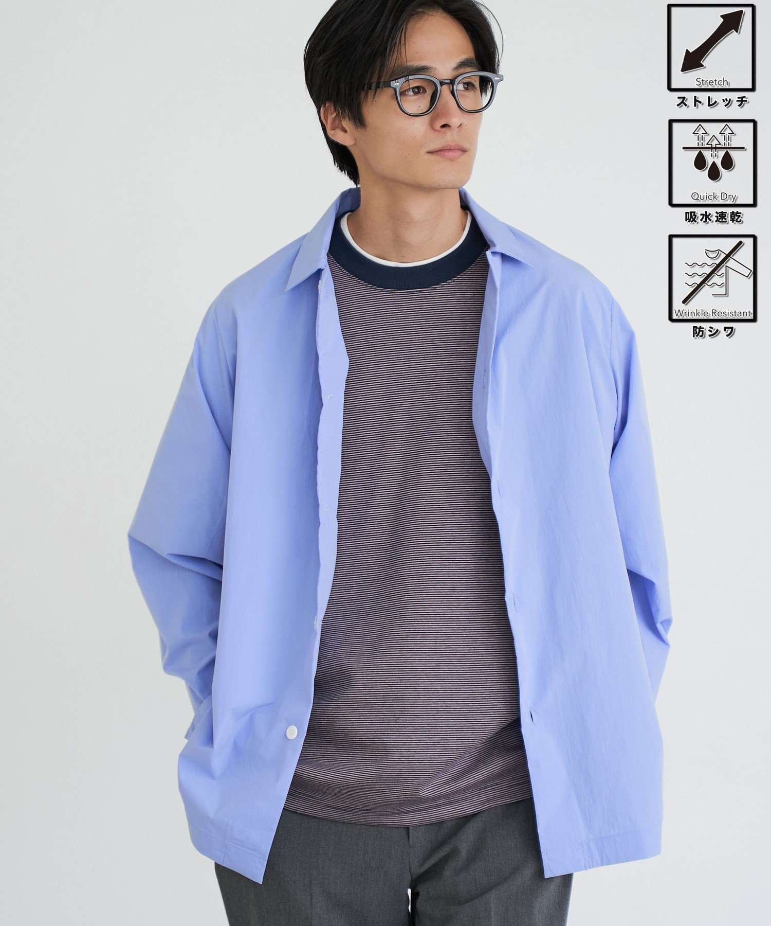 coen 楽はおりシャツ【ストレッチ,吸水速乾,防シワ】 コーエン トップス シャツ・ブラウス グレー ブルー【送料無料】