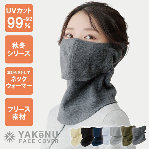 (ヤケーヌ公式) ぽかぽかフリースヤケーヌ フェイスカバー 耳カバー スナップ式 洗える UVカットマスク 息苦しくない ネックウォーマー 紫外線対策 フェイスウォーマー 日焼け防止 冬用 ランニング スキー スノボ 雪山 登山 [M便 1/2]