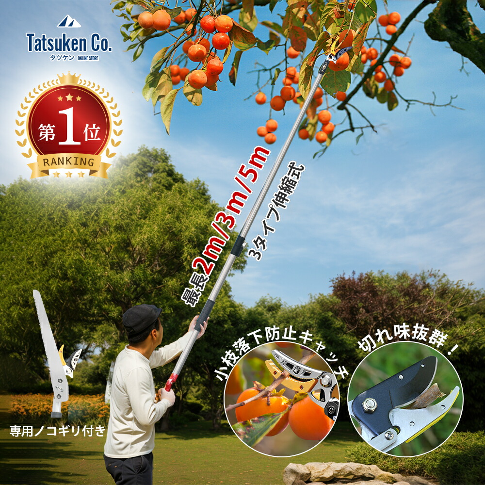 「 10/20 本日限定!P5倍! 」\楽天1位 高評価/ 高枝切りバサミ 最長3m 5m 2m 超軽量 伸縮式 ノコギリ付き 切ってつかめるハサミ 3段 5段 7段 剪定鋏 伸縮高枝切り鋏 2m 3m 5m園芸 高所太枝切鋏 高枝切り 剪定鋏 ガーデニング用品 女性用 軽い ガーデニング鋏