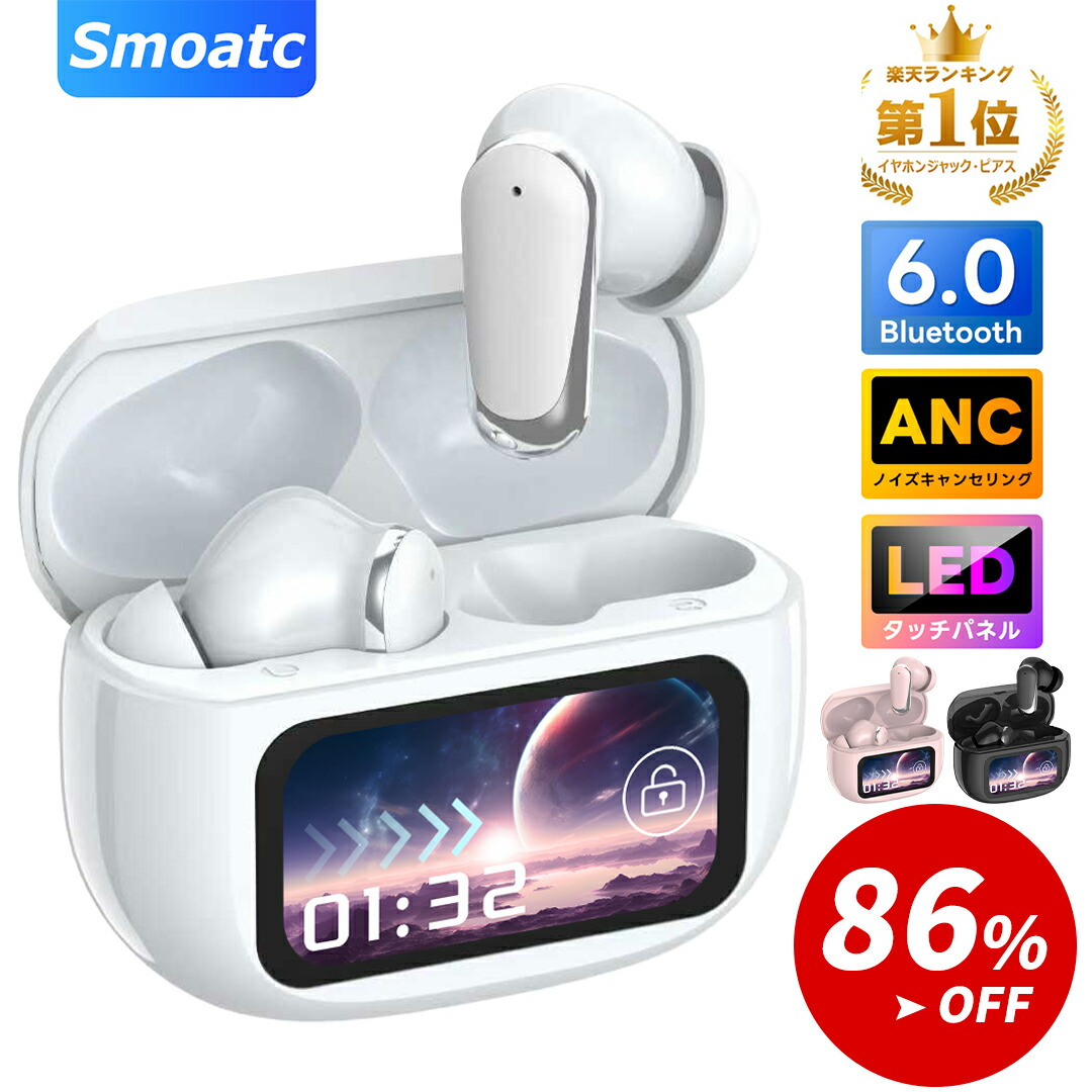 【楽天1位】\好評続々!86%OFF&クーポンで2,720円/ ワイヤレスイヤホン イヤホン 液晶イヤホン bluetooth 6.0 ANC対応 iPhone17対応 ワイヤレス-イヤホン Bluetooth ノイズキャンセリング 多機能タッチスクリーン マイク付き ENC通話 HiFi LEDディスプレイ