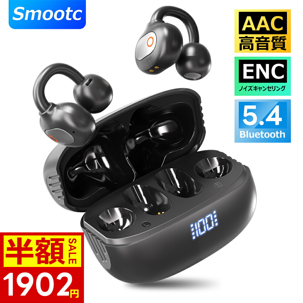 Smootc ワイヤレスイヤホン イヤホン Bluetooth 耳をふさがないイヤーカフ 圧迫感ゼロ 業界トップ音質 骨伝導の革新 指向性音伝送技術 音漏れ抑制 軽い着装 落ちにくい 耳かけイヤホン