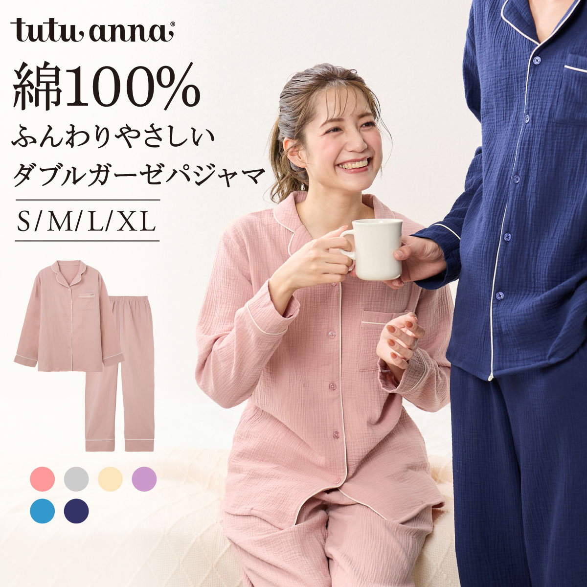人気のパジャマがリニューアルして登場。綿100%のダブルガーゼ生地を使用。ふんわり空気を含んだようなやわらかい肌あたりと軽い着心地。