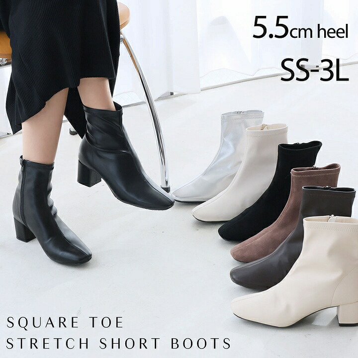 【500円OFFクーポンで3980円】【5.5cmヒール】25年秋冬新色 Vivian ブーツ レディース ショート ストレッチ スクエアトゥ チャンキーヒール ブラック 黒 通勤 オフィス SS 3L ソックスブーツ メタリック シルバー V6270AW