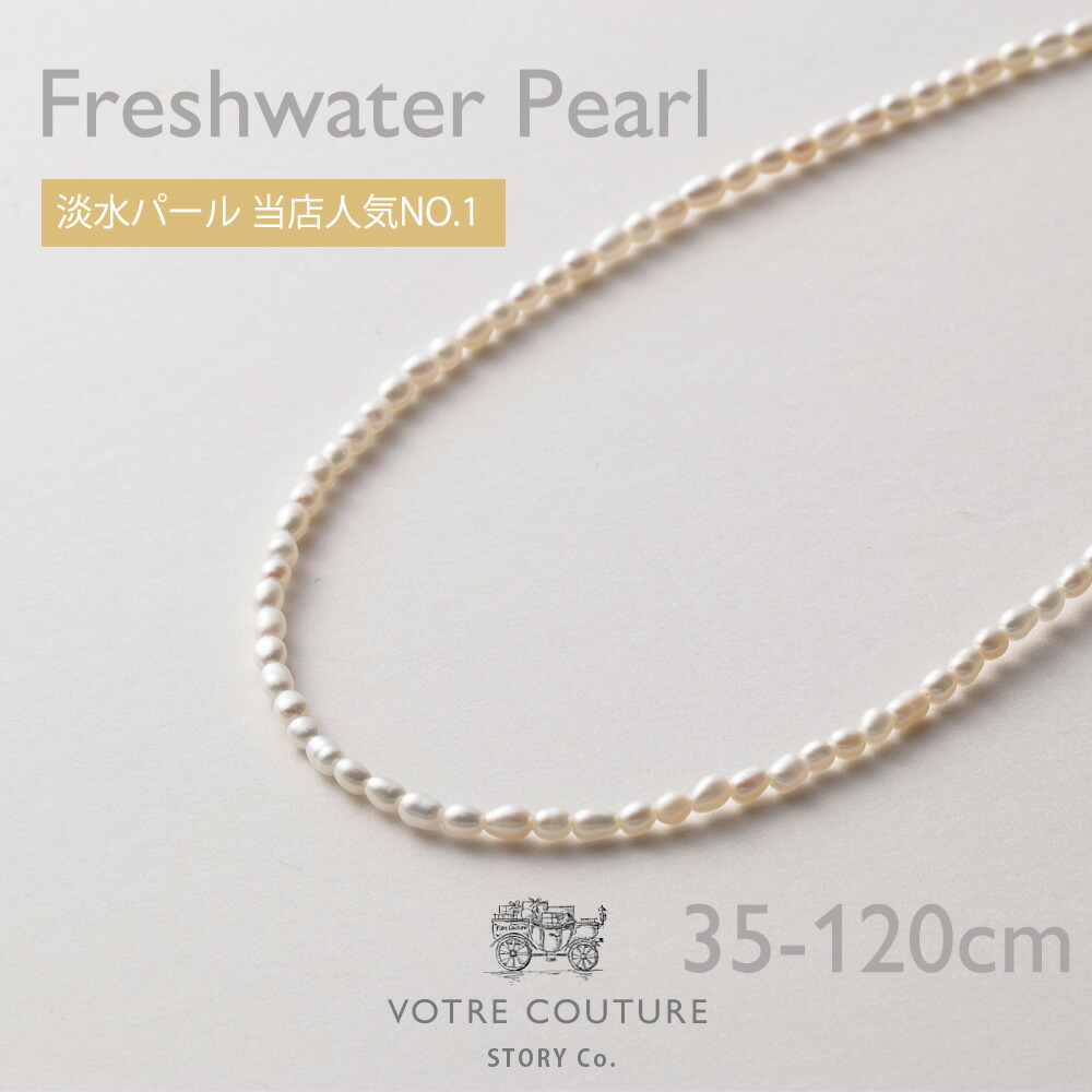 淡水パール ネックレス 本真珠 女性 ギフト 上品 華奢 白 ホワイト 35cm 38cm 41cm 44cm 50cm 60cm 70cm 80cm 90cm 100cm 110cm 120cm【メール便 送料無料 】【VOTRE COUTURE】