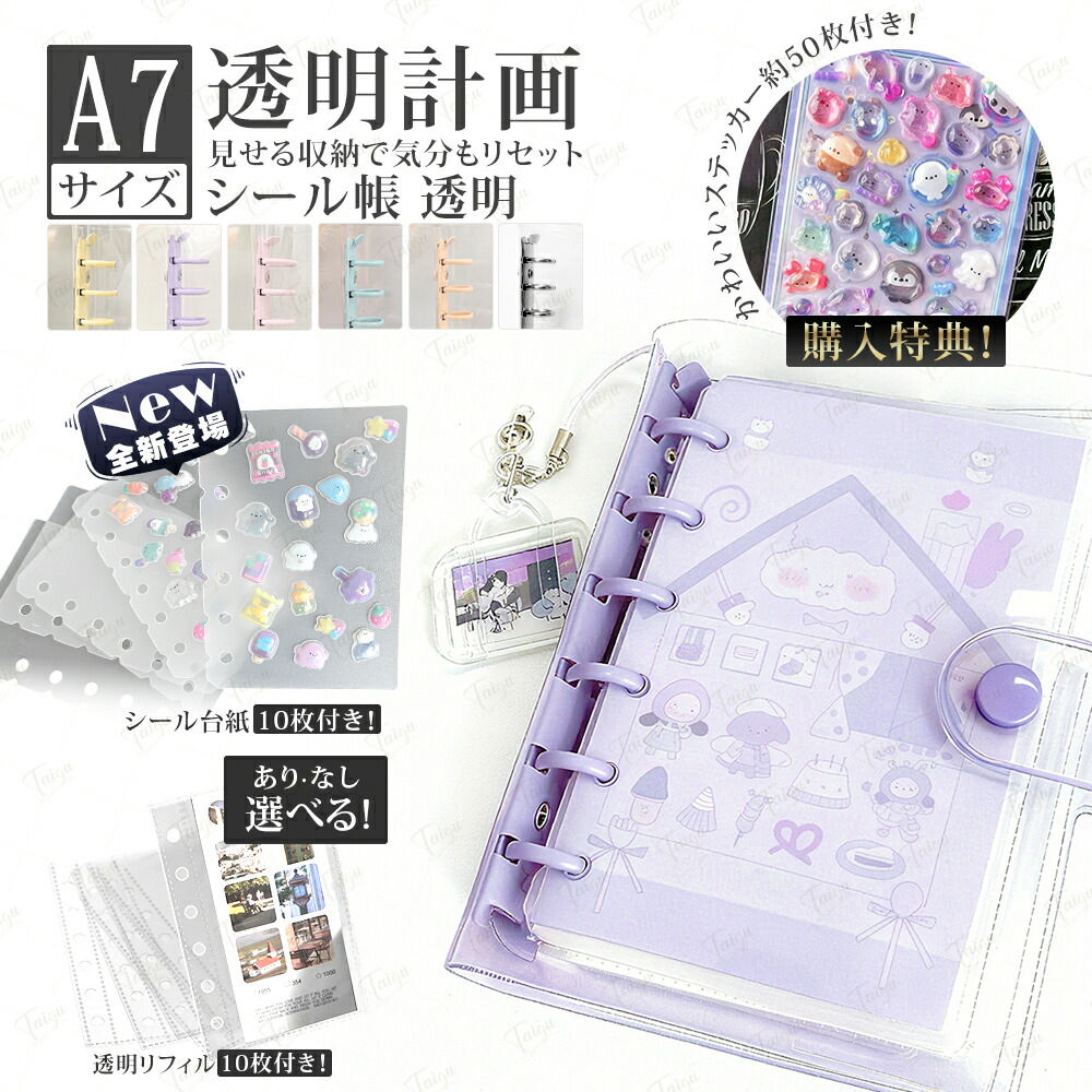 \20%OFF/【シール帳+リフィル20枚】シール帳 バインダー 透明 リフィル A7 サイズ 6穴 台紙 可愛い クリア シール手帳 透明シール帳 小学生 かわいい キャラクター 大きめ 小さい ミニサイズ クリア手帳 シール バインダー 女の子 シール交換帳 システム手帳 シールちょう帳